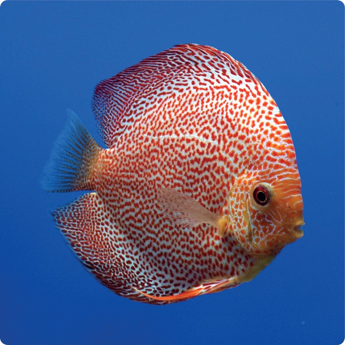 The Stendker Red Leopard Discus is a striking strain of Symphysodon aequifasciatus, bred in Germany and exclusively available through Stendker Discus USA. These Discus are known for their unique pattern of red spots or patches that adorn their body, which contrasts with their white or pale blue base color. This striking combination of colors makes the Red Leopard Discus a popular choice among aquarium enthusiasts who want to add a touch of elegance and vibrancy to their aquarium. Stendker Red Leopard Discus are also prized for their hardiness and disease resistance, as well as their relatively easy care requirements, which make them an attractive option for both novice and experienced aquarists. Whether you're looking to create a peaceful aquatic environment or to showcase a stunning centerpiece in your aquarium, Stendker Discus USA offers high-quality Red Leopard Discus that are sure to impress.